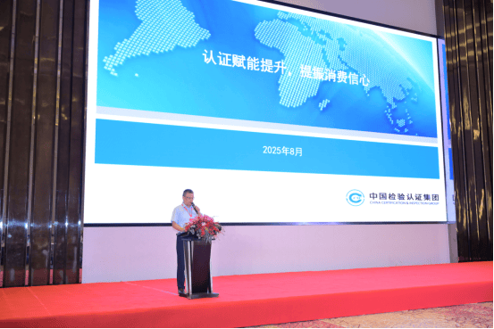 中国查验认证集团华东区域认证核心市场总监孟东润正在会上做了题为《认证赋能提拔,